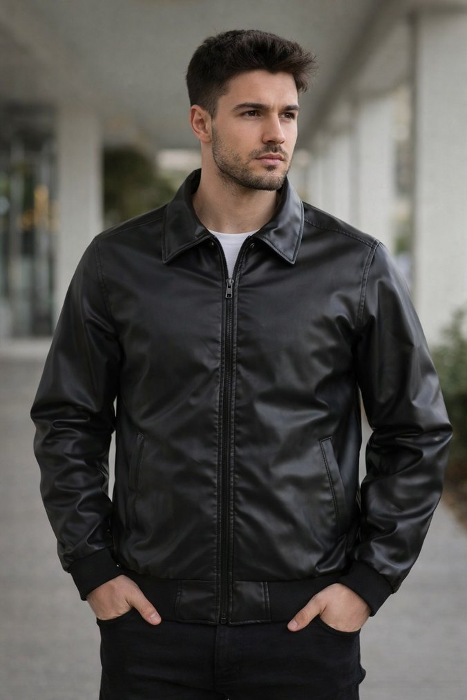 Erkekler için siyah deri ceket, regular fit ve notched lapel yakaya sahiptir. Düz deseniyle dış mekanlarda rahat ve şık bir görünüm sunar. S.M.L.XL.XXL medenleri mevcuttur.iade yoktur. model üzerindeki L bedendir. ürünlerimiz 1. kalite sıfır imalattandır.