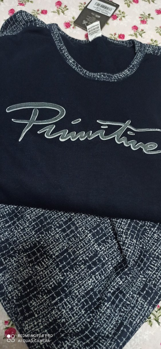 Erkekler için siyah vintage rozet, counterculture tarzında ve rock punk havasında. Üzerinde klasik yazı stiliyle 'Primitive' yazısı bulunur.