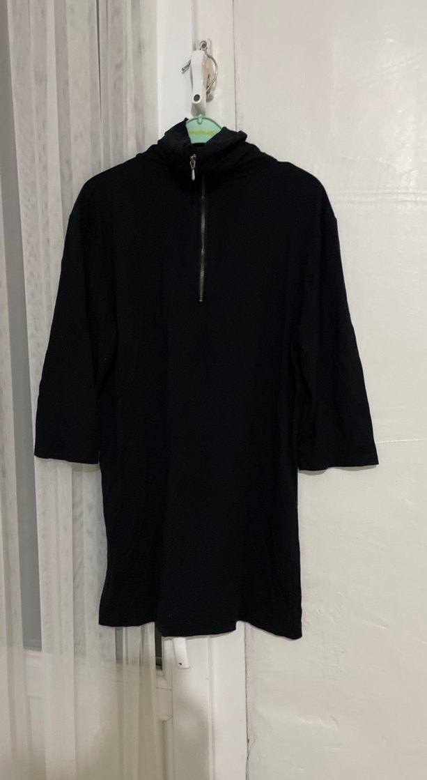 Yarım fermuarlı, yüksek yakalı ve uzun kollu erkek sweatshirtü. Siyah renkli, yumuşak ve sıcak dokulu kumaştan, rahat kesimli.