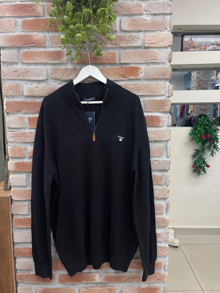 Erkek Siyah Yarım Fermuarlı Yün Kazak