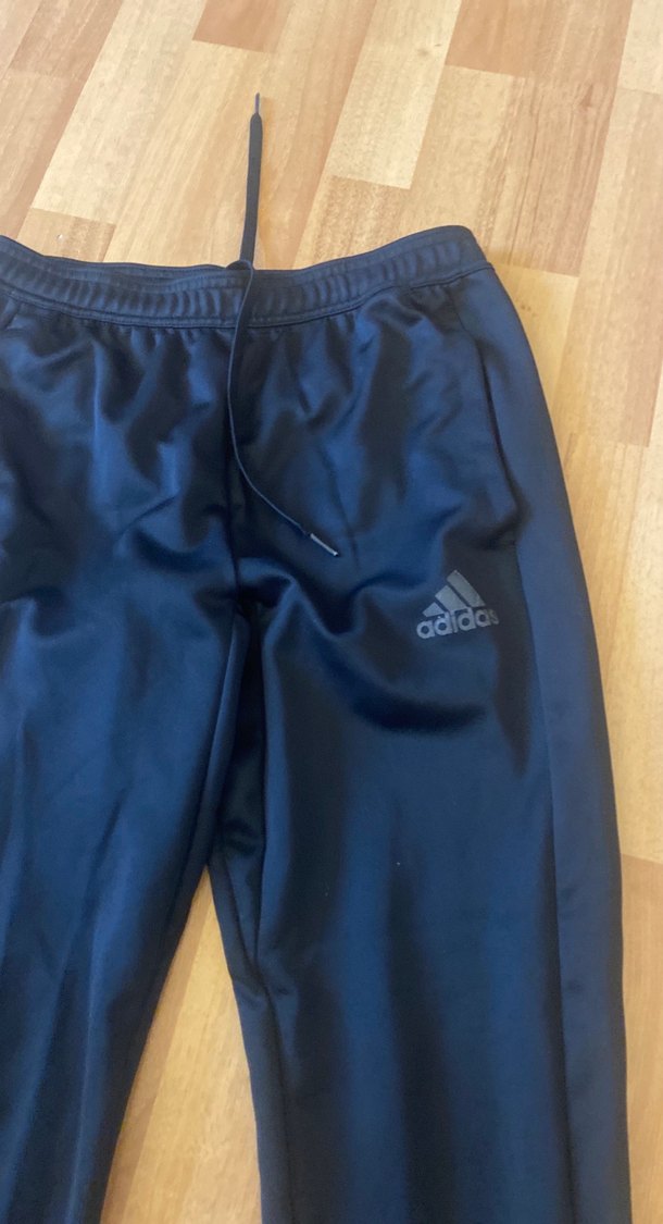 cepleri ve lsiyahrengiyle erkekler için dar kesim Adidas eşofman altı. Sentetik kumaştan, rahat ve sokak modasına uygun.