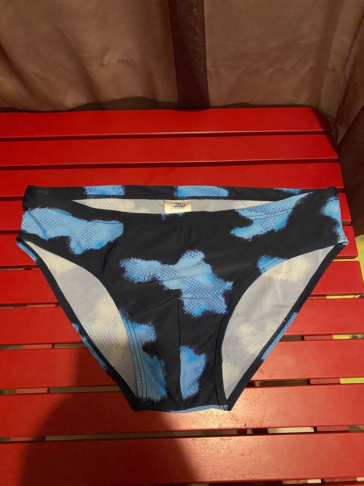 Erkek slip için bağlama desenli, koyu mavi renkli, dar kesim mini bikini altı. Sokak stili ve athleisure için rahat ve şık, kısa boyda.