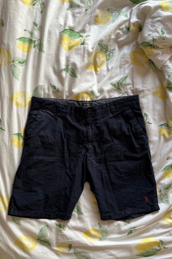 Polo marka lacivert pamuklu erkek şort, düğmeli ve günlük rahat sokak tarzı için uygundur.