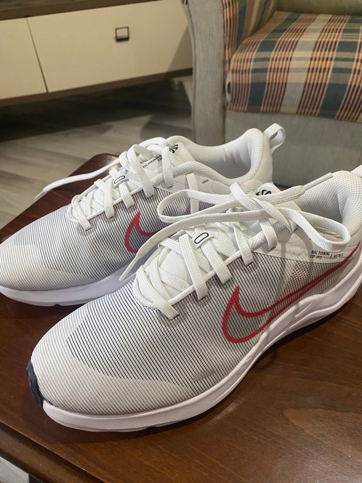 Beyaz ve gri desenli, bağcıklı erkek spor ayakkabısı. internetteki fiyatı 4k