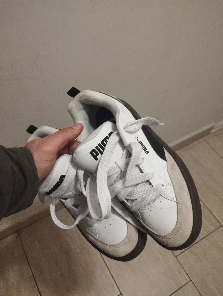 Beyaz kadın spor ayakkabısı, platform topuklu ve cırt cırtlıdır. Kauçuk tabanlı, spor ve günlük kullanıma uygundur. Gri detaylarıyla sade athleisure tarzını yansıtır.