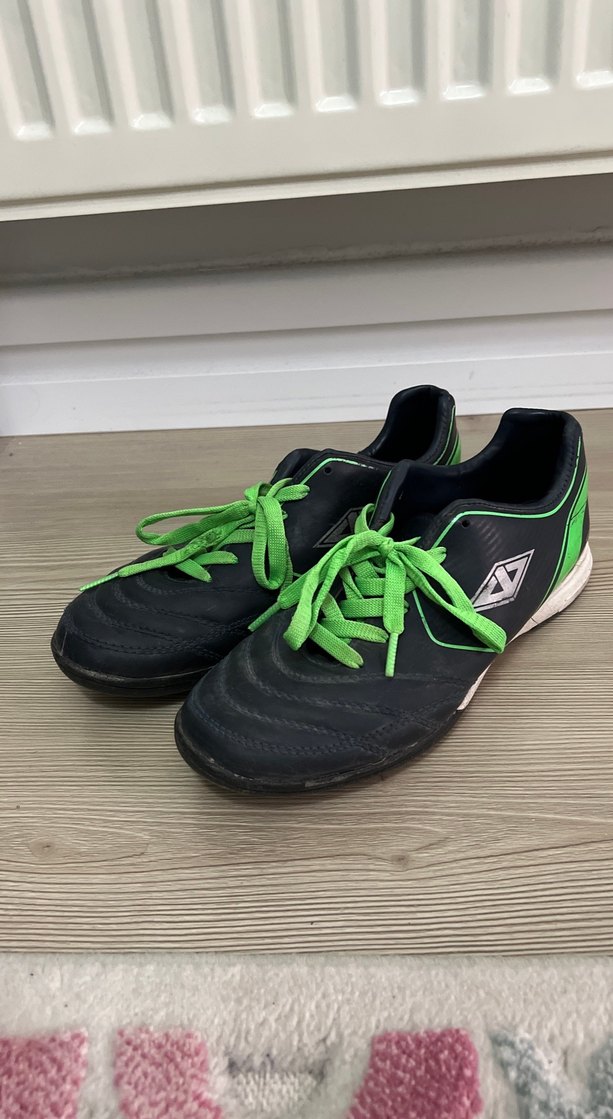 Erkek futbol ayakkabısı, kauçuk tabanlı, koyu yeşil ve siyah renklerde, cırt cırt ve bağcıklı, sportif ve rahat sokak tarzına uygun. ⚽