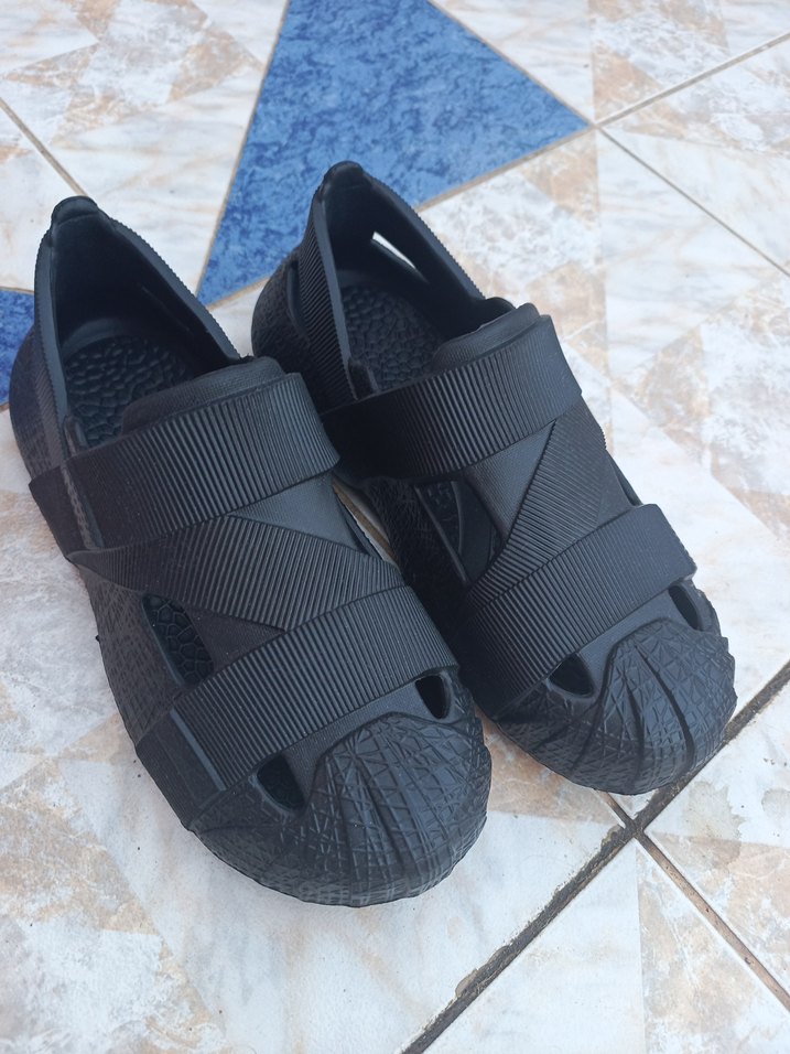 Siyah erkek, ve bayan spor sandalet, cırt cırtlı ve kauçuk tabanlı. Streetwear ve athleisure tarzı için uygun, spor ve günlük kullanıma ideal.