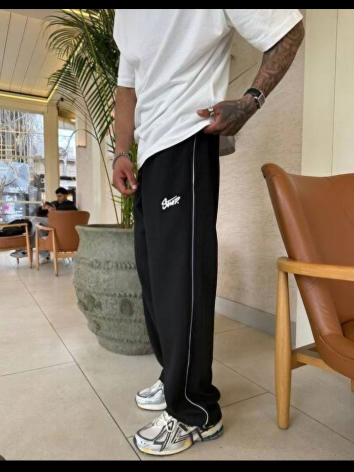 Bu siyah baggy erkek eşofman altı, rahat pamuklu kumaşı ile günlük kullanıma uygun, sade ve şık bir tasarıma sahiptir.