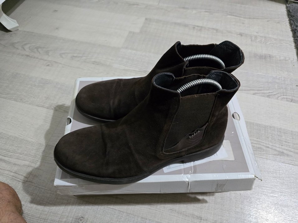ERKEK SÜET İTALYAN STİL BOT.İKİ ÜÇ DEFA GİYİLMİŞTİR.HERHANGİ BİR SORUNU YOKTUR.LÜTFEN ÜRÜNÜ İNCELEYİP ÖYLE ALIM YAPINIZ.İADE KABUL ETMİYORUM.