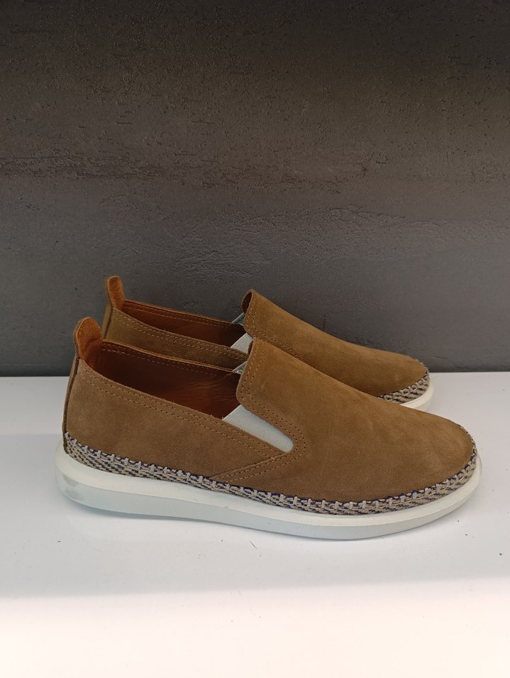 Yumuşak süet malzemeden yapılmış açık kahverengi erkek espadrili, çağdaş ve rahat bir stile sahip, zahmetsiz şıklık sunar. Günlük kullanım için uygundur, desensiz tasarım.43 numaradır