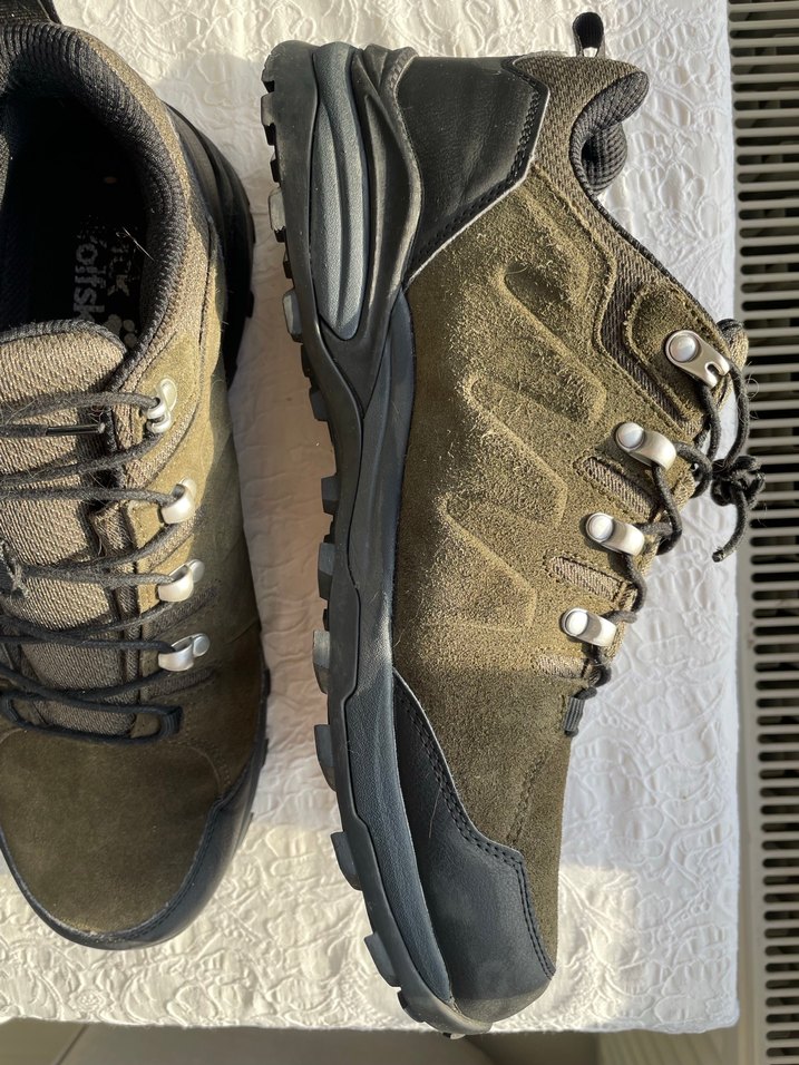 45,5 numaradir. Haki süet erkek outdoor ayakkabılar, kayışlı kapama ve gri taban ile athleisure tarzını sokak modası rahatlığıyla birleştiriyor. Desensiz tasarım günlük kullanıma uygun.