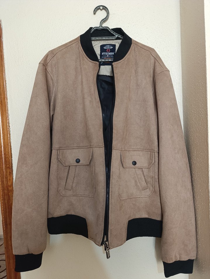 Erkek süet ceket, normal boyda ve uzun kollu, düğmeli ceplerle. Notlu yaka ve gri-kahverengi tonlarda, günlük rahat kullanım için uygun. 76 kilo iken aldım 2 defa giydim suan 69 kiloyum DAR KESİMDİR ---M--- BEDEN GİYEN birisi için uygundur