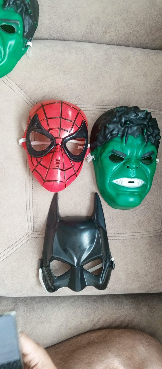 Elastik bantlı, Spider-Man, Hulk ve Batman desenli üçlü erkek süper kahraman maskesi seti. ♂️