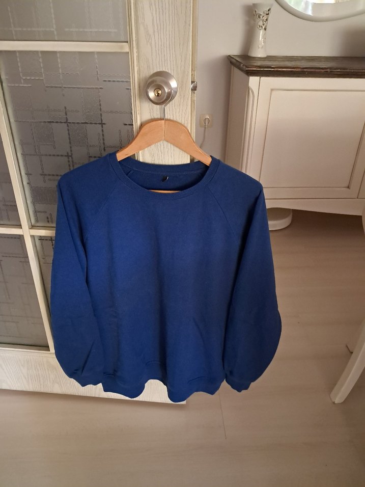 Bisiklet yaka ve uzun kollu, rahat kesim. Yumuşak ve sıcak kumaştan, koyu mavi renkte, gündelik kullanım için ideal. boy 70 cm, iki dikiş arası göğüs 67 cm, kol boyu omuzdan itibaren 73 cm