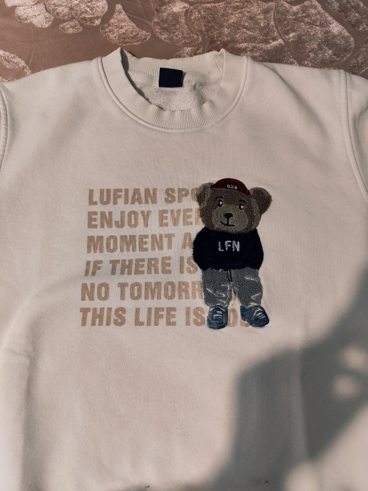 Bol kesim, yuvarlak yakalı, sweatshirt. Baskılı yazı ve ayı figürü bulunur. yumuşak ve sıcak kumaştan yapılmıştır. orjinal lufian markadır