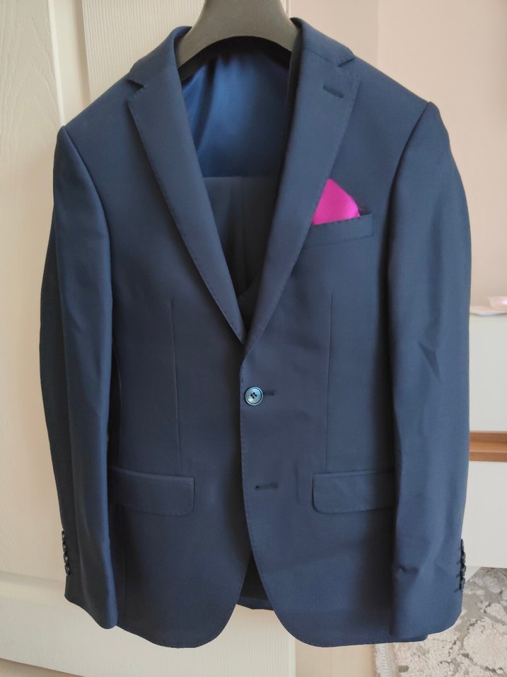 Düğmeli, normal boyda, klasik kesim lacivert erkek takım elbise. Ofis ve klasik zarafet için uygun, modern klasik tarzda, uzun kollu ve desen içermez.50 kg erkeğe uygundur Altınyıldız altındaki başka bir firmanin ürünüdür kalitelidir️