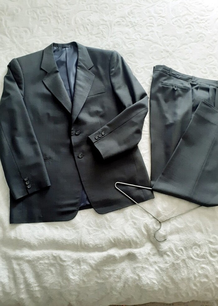 Ürün yeni.Hic giyilmedi Pamuklu polyester karışımı rahat bir kumasi vardır.ceket boyu 74/75cm.pantolon boyu 104/105 cm.Paca genişliği 21/22 cm