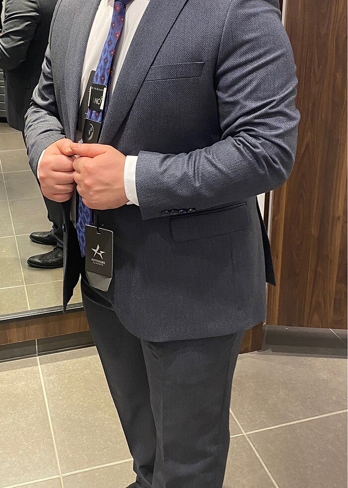 Ceket Pantolon Kıravat şeklinde gönderilecek. Ölçüler:170 boy 100-105 kg. 56 beden 4 drop Altınyıldız marka. Bir gece giyildi. Teklif verebilirsiniz.