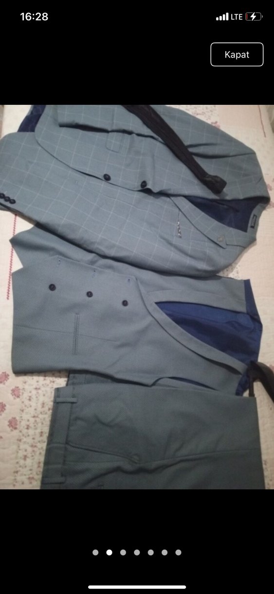 Düğmeli ön kısmı ve kesik yaka Sentetik kumaştan, normal kesim ve çağdaş stil, ofis kullanımı için uygundur. Ceket yelek pantolon kravat mevcuttur. Ürün 1 defa kullanılmıştır sağlamdır. 56 -6drop bedendir