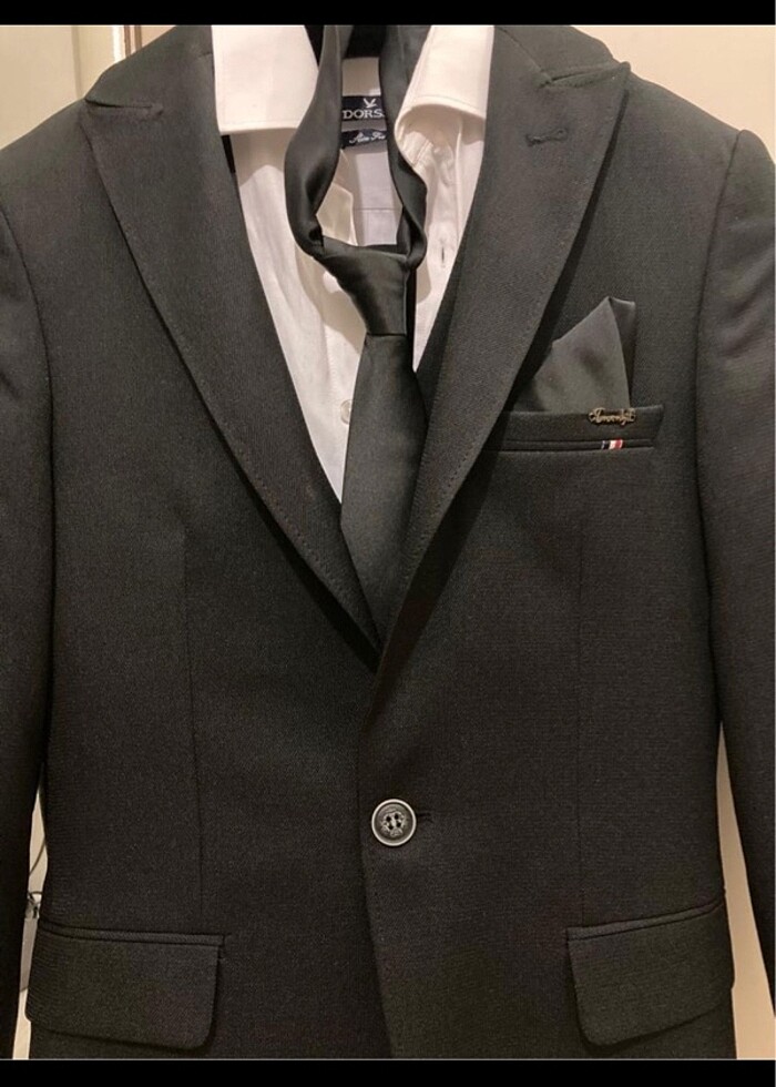 Temiz 1 kez giyildi 44-6 drop içerisinde beyaz gömlek ceket yelek pantolon kalıp slim fit beden 31 kravat mevcut