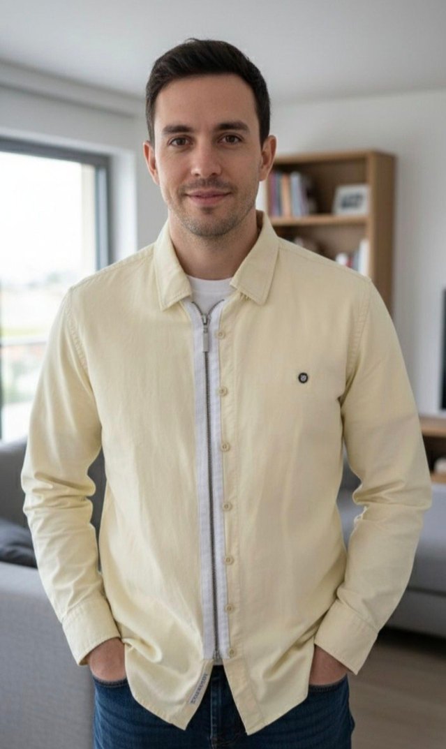 Temiz ve az kullanılmıs, sarı renk sık erkek gömlek. Önde fermuar + düằme detavlı özel tasarım modeldir. Kuması yumuşak ve kaliteli, durusu çok hos. Her kombine uyum sağlar. Lekesiz, sorunsuz, tertemizdir...Yeni gibi..