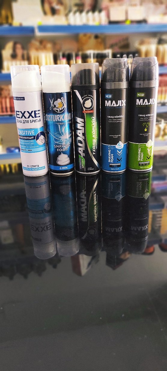 EXXE Sensitive, Naturkama Cool, Adam ve Majix markalarından farklı erkek tıraş köpükleri, pürüzsüz tıraş için.