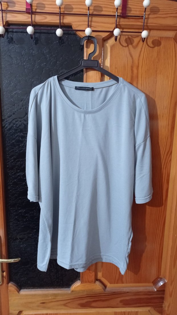 Erkek L bedendir gri renkli, kısa kollu ve yuvarlak yakalı. İpek gibi yumuşak kumaştan, günlük kullanım için minimal ve rahat tarzda.
