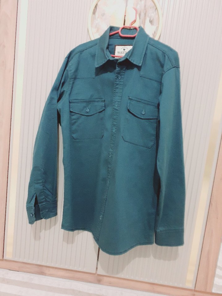Erkekler için koyu turkuaz renkte, kot kumaştan, uzun kollu, düğmeli ve normal boyda gömlek. Notlu yaka ve rahat kesimle günlük sokak stiline uygun.