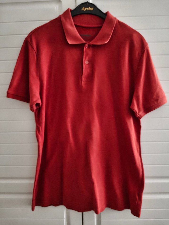 Kısa kollu, yakalı erkek turuncu polo tişört, parlak sentetik kumaştan üretilmiştir. Salaş kesimli ve normal boydadır, günlük sokak stiline uygundur. Üzerinde "Ayrlss" markası bulunmaktadır.