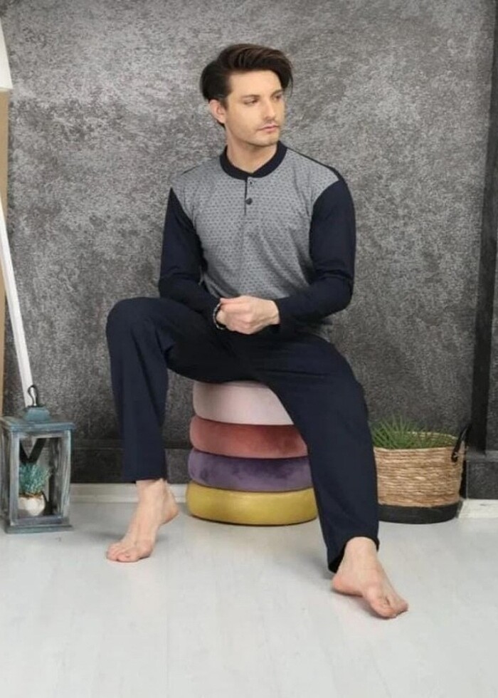 Erkek uzun kollu 100% pamuklu suprem jakarlı pijama takımı