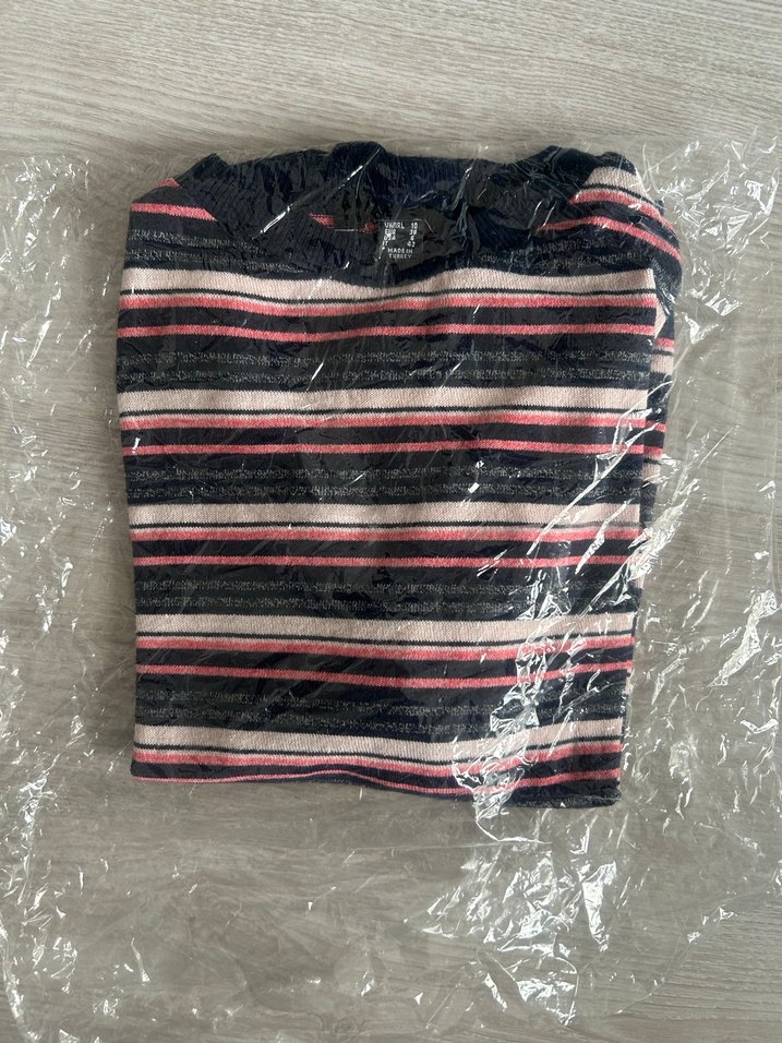 Erkek için uzun kollu, fitted kesim tişört. Pilili detaylı, bisiklet yaka ve çizgili desenli, sokak stiline uygun.Sıfır paketinde,m beden
