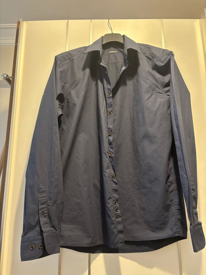 düğmeli, uzun kollu ve normal boyda erkek gömleği. Ofis ve günlük sokak tarzı için uygundur.