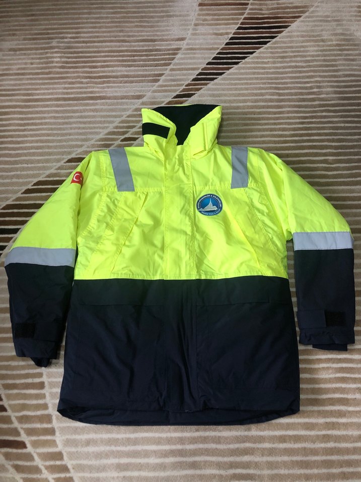 Renkli baskılı, uzun kollu ve notalı yaka detaylı, ayarlanabilir cırt cırtlı erkek rüzgarlık. dış mekan kullanımı için tasarlanmıştır. İş montu