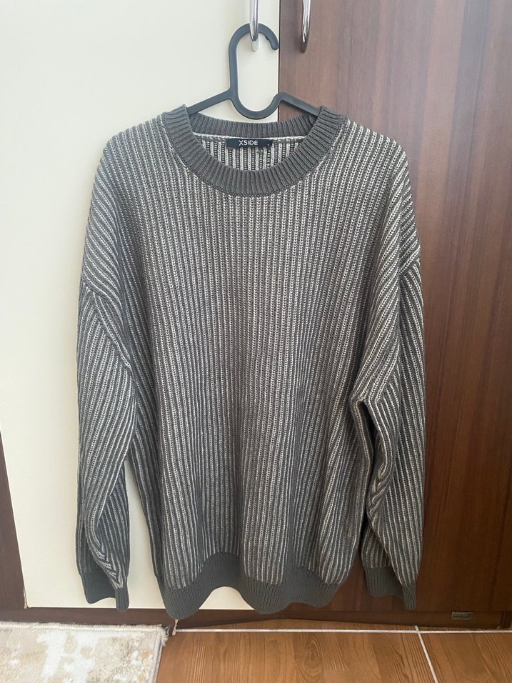 Gri renkli, uzun kollu ve yuvarlak yaka örgü kazak, rahat kesimi ve desen içermeyen tasarımıyla günlük sokak stili için uygundur.