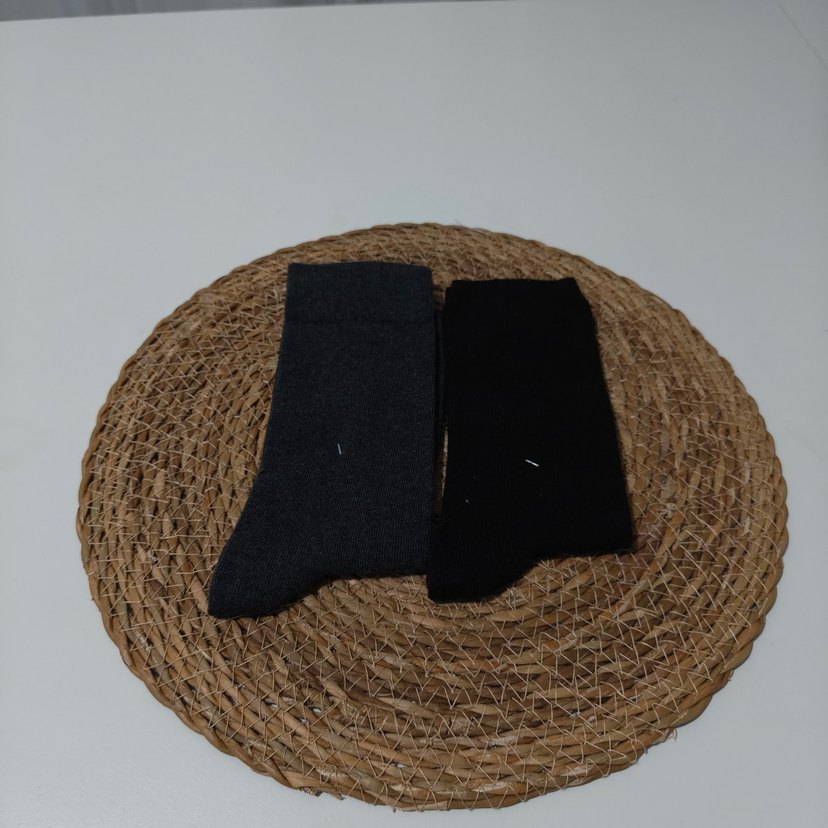 Erkekler için siyah renkte, uzun ve rahat kesime sahip iki çift çorap.