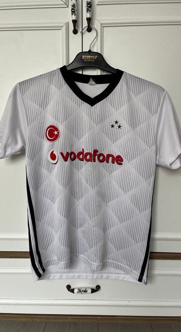 Erkekler için V yaka, kısa kollu, bol kesim beyaz forma .Yanlardan çizgili ,baskılı desenli ve düğmeli detaylıdır. Vodafone logosu mevcuttur. ⚽