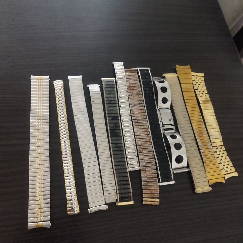 Altın ve koyu tonlarda çeşitli metal bağlantı tasarımlarına sahip erkek vintage saat kordonları koleksiyonu farklı ölçülerde saat kordonları ⌚