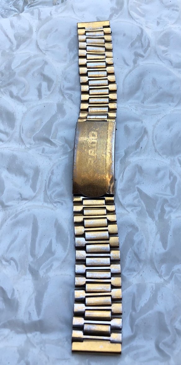 Parlak altın kaplamalı, vintage tarzda erkek saat kayışı. Aşınmış detaylarıyla karakter katar, karşı kültür tarzına uygundur. ⌚