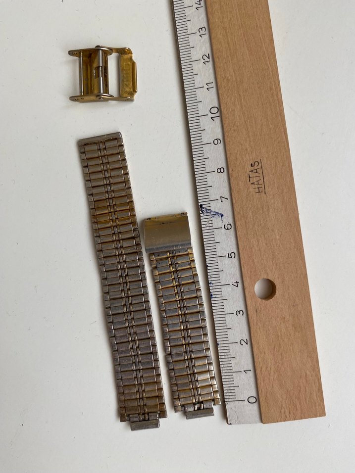 Parlak esnek bağlantılı vintage erkek saat kayışı, toka detaylı, boyut için cetvelle gösterilmiştir. ⌚ Kayışta tek açılmaları mevcut. Ayrıca kayışın birleştirme aparatı kopuk. Tek taraftan kapanıyor. Diğer üç kısmına bir ilave gerekiyor. Sorularınızı cevaplarım. İade olmaması için.