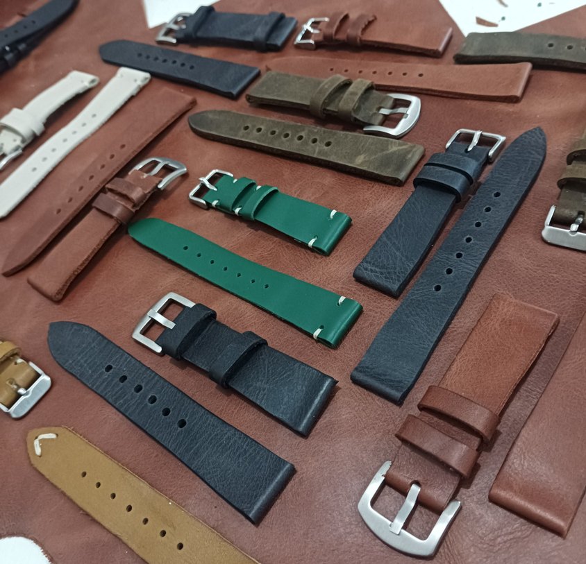 Koyu haki tonlarında, vintage görünümlü erkek saat kayışları. Dayanıklı metal tokalar ve eski tarz bir dokunuş sunar. ⌚