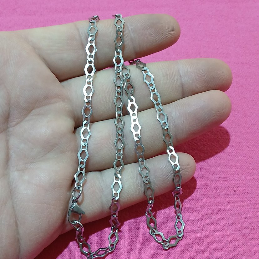 Erkekler için vintage tarzda, geometrik halkalardan oluşan zincir kolye. Bohem ve retro tarzlara uygun şık tasarım. 55cm 5 mm
