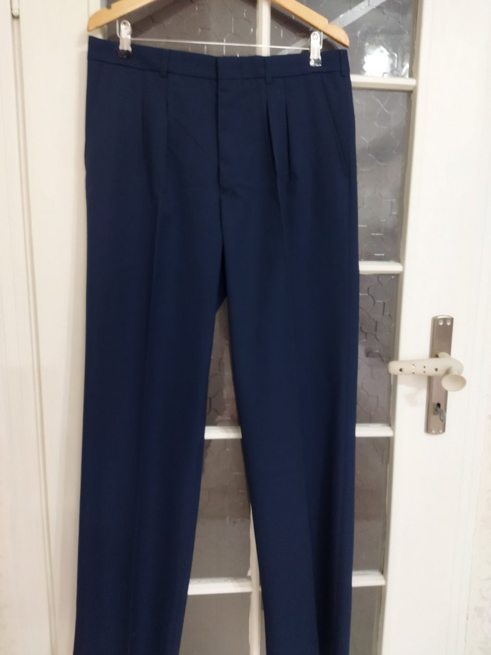 Erkek kumaş pantolon sıfır kullanılmamış paçaları yapılmamış yazlık kumaş pantolon beden 52 yazıyor 44 bedene uyumlu bel genişlik ölçüsü 44 cm boy uzunluğu 115 cm paça ağzı genişliği 24 cm ihtiyaç fazlası Lacivert renkte, regular fit, pilili ve midi boy erkek kumaş pantolon. Ofis ve iş ortamına uygun, sade ve normcore tarzda, sentetik kumaştan üretilmiştir.