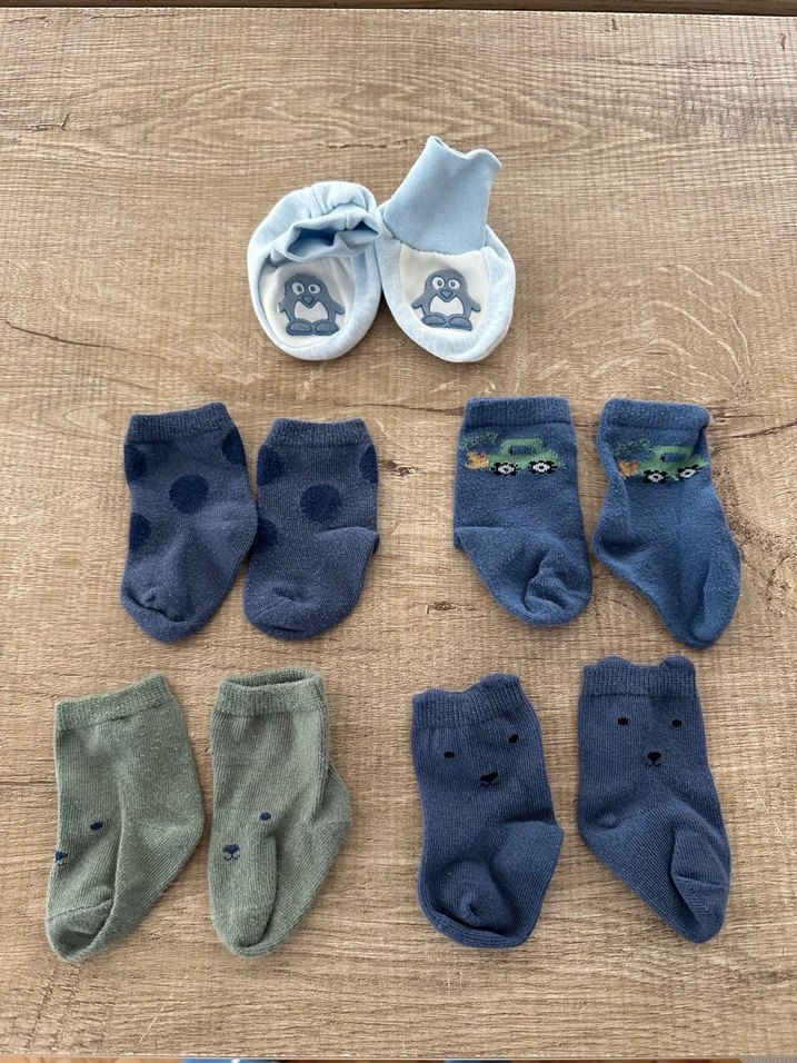 Mavi ve yeşil tonlarda erkek bebek çorap seti. Hiç giyilmedi, yıkandı sadece.