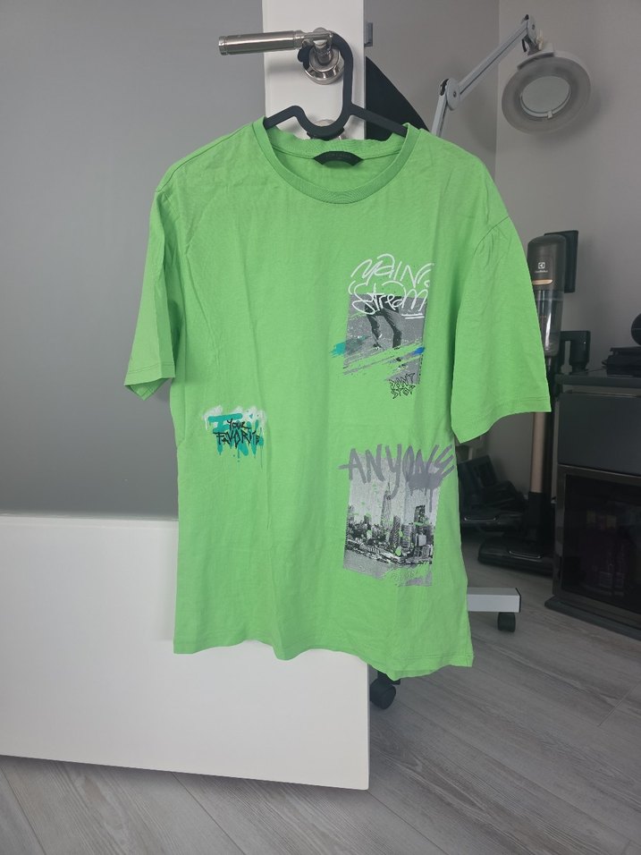 Erkekler için yeşil pamuklu tişört, bol kesim, bisiklet yaka, kısa kollu ve baskılı sokak tarzı desenlere sahip. Günlük kullanım için uygundur. hiçbir deformasyon yoktur