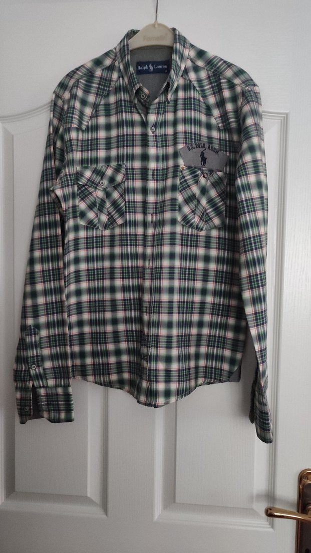 Düğmeli, uzun kollu erkek gömleği, kesik yakalı, bol kesim ve ekose desenli. Tekstil malzemeden, günlük ve sokak tarzı için uygundur. En 49 boy 67