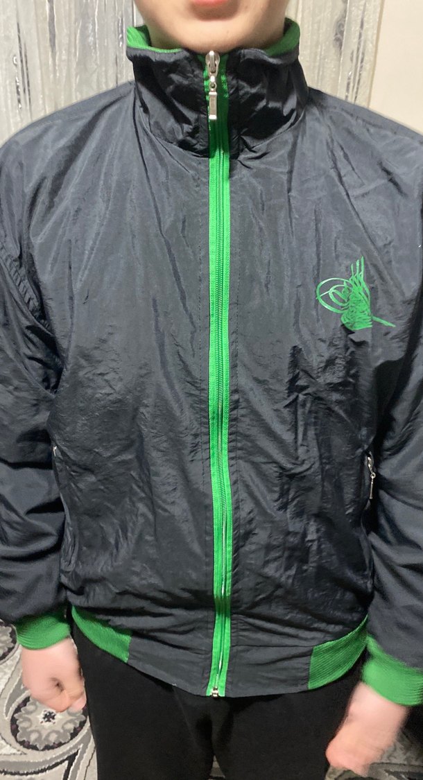 Erkek yağmurluğu, yüksek yaka, uzun kollu ve dar kesimdir. Sentetik kumaştan üretilmiş, yeşil fermuar ve detaylara sahiptir. Spor ve gündelik kullanıma uygundur. ️