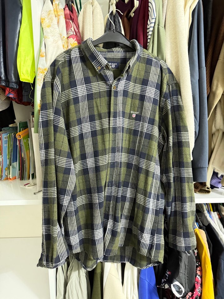 Uzun kollu, düğmeli ve bol kesim erkek gömleği. Pamuk kumaştan, yeşil kareli desenli, notlu yaka detaylıdır. Rahat ve günlük kullanıma uygundur.
