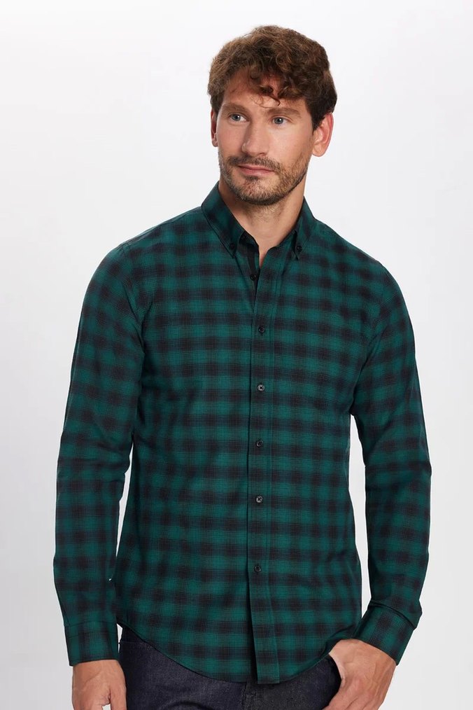 Erkek Yeşil Kareli Uzun Kollu Gömlek