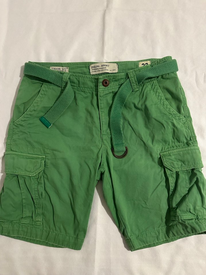 Erkekler için yeşil renkli, kemerli ve bol kesim şort. Çoklu cepleri ile rahatlık sunar. 2-3 kere giyildi kusuru yok tertemiz