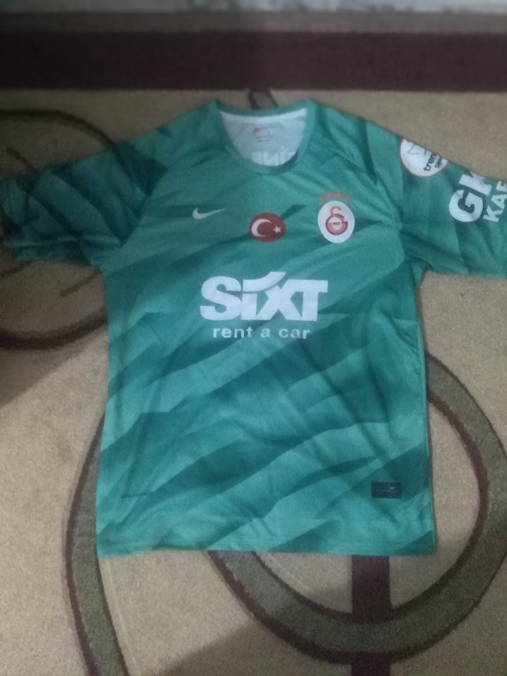 Yeşil renk, kısa kollu, yuvarlak yaka, bol kesim erkek forması. Baskılı desen ve örme sentetik kumaş içerir. SIXT rent a car baskılı. ♂️